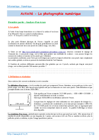 Activité - La photographie numérique